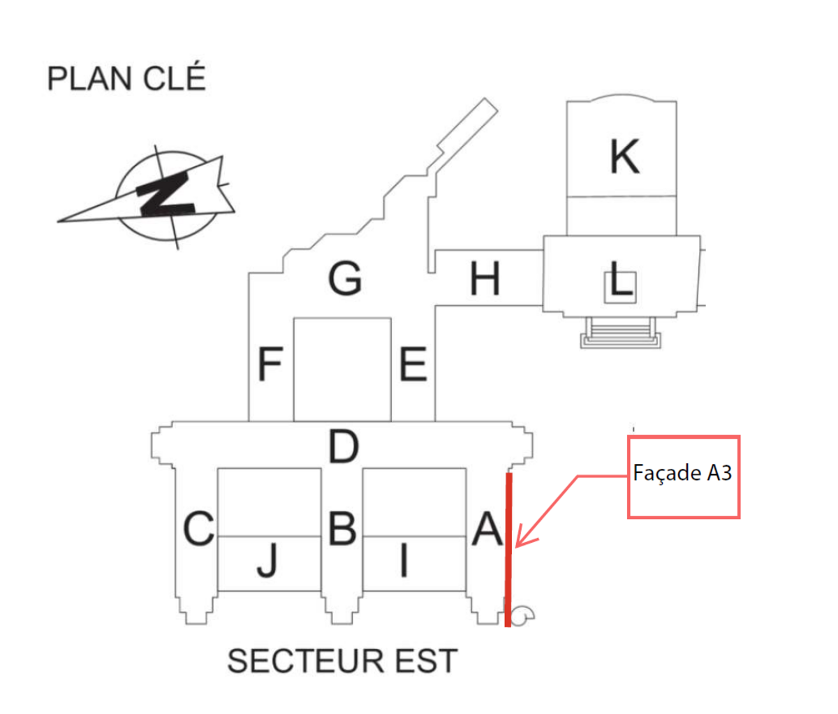 - Dans le cadre du projet de réfection des fenêtres et maçonnerie, le service de chauffage sur la façade A3 du pavillon sera temporairement interrompu (voir l'image ci-dessous).
