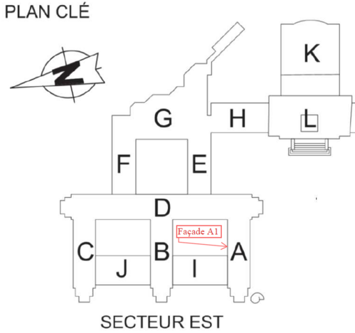 - À la suite des travaux de maçonnerie, il est prévu d'effectuer le lavage de la façade A1 à tous les étages du pavillon Roger-Gaudry est (voir le plan plus bas).