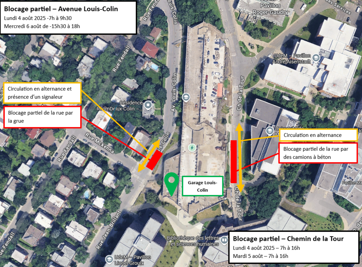 Une portion de la voie de l'avenue Louis-Colin sera temporairement bloquée en raison de la présence d'une grue;