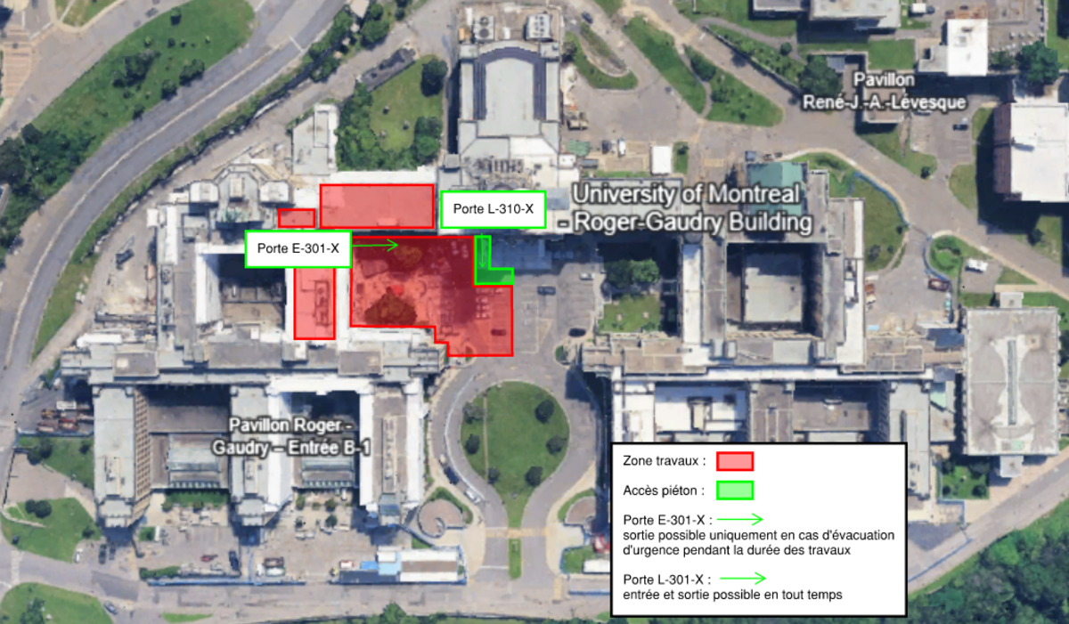- La circulation se fera par la porte E-301-X UNIQUEMENT cas d’évacuation d’urgence pendant la durée des travaux.