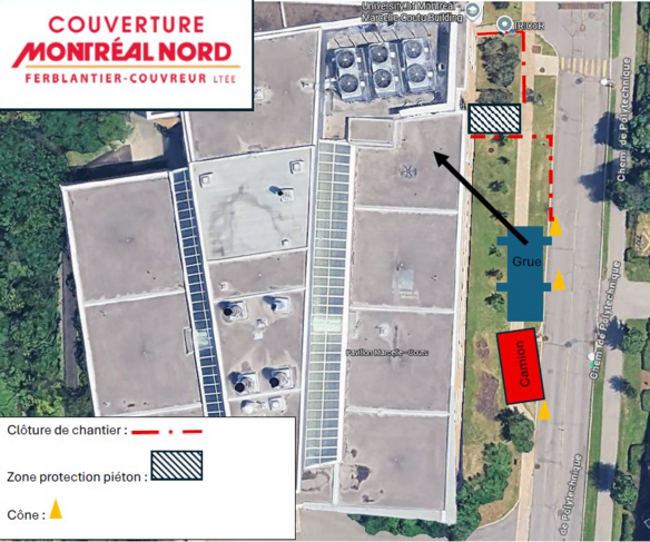 Une partie du trottoir et de la voie du chemin de Polytechnique devront être occupés par un camion (voir plus bas les détails sur le plan).