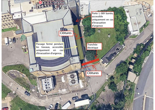 Il est nécessaire de creuser une tranchée (excavation du sol) pour faciliter le passage des câbles électriques souterrains à l'extérieur du pavillon Roger-Gaudry (voir les détails sur le plan plus bas);