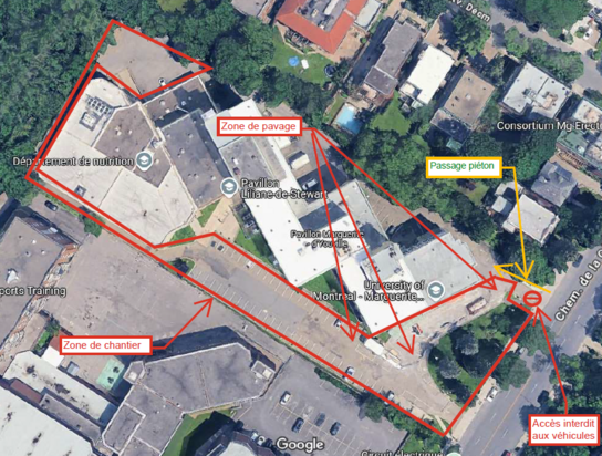 Des travaux de pavage et d'asphaltage sont prévus dans le stationnement P-28 du pavillon Marguerite-d'Youville (voir des détails sur le plan plus bas).